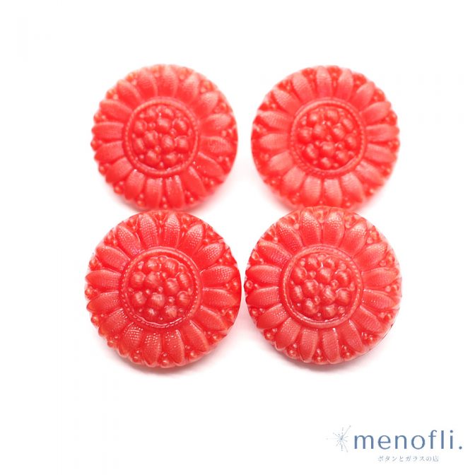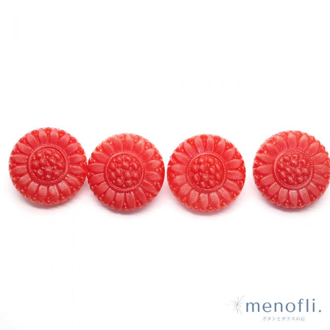 ★ひまわりデザイン 赤 チェコガラスボタン ヴィンテージボタン
