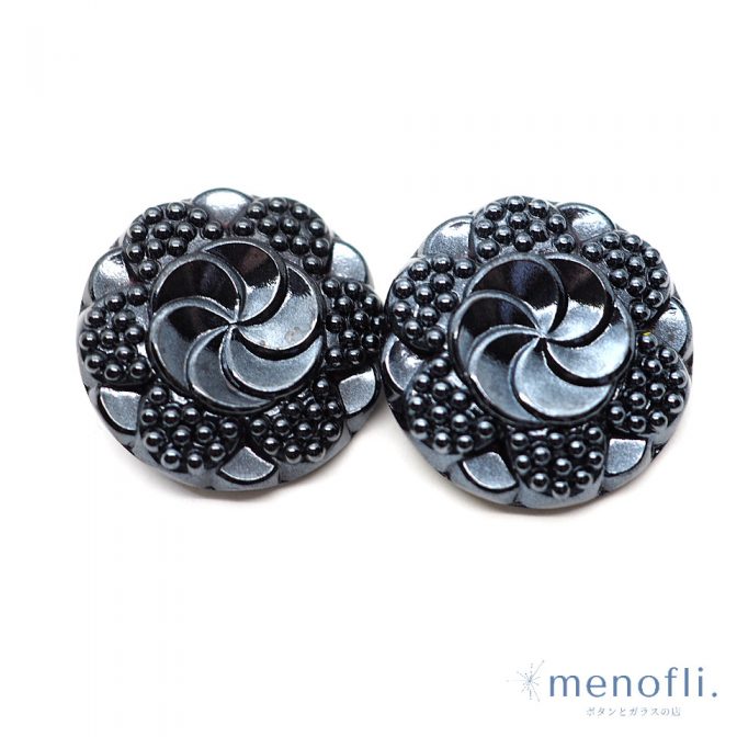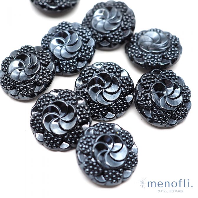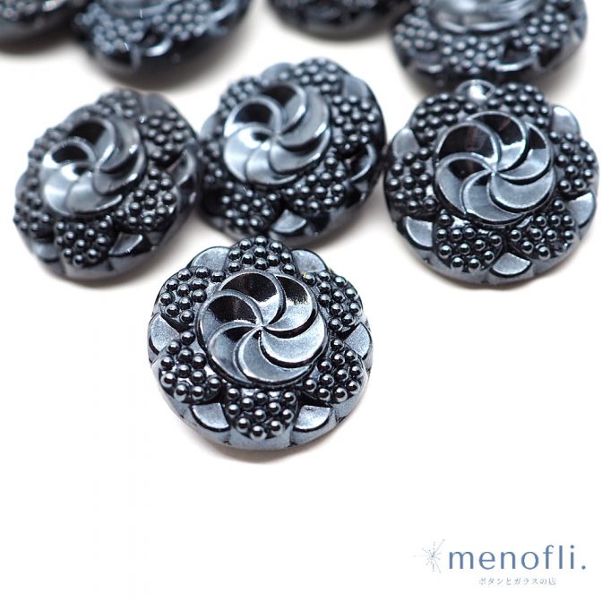 黒 フラワー ヴィンテージボタン チェコガラスボタン RCZB081