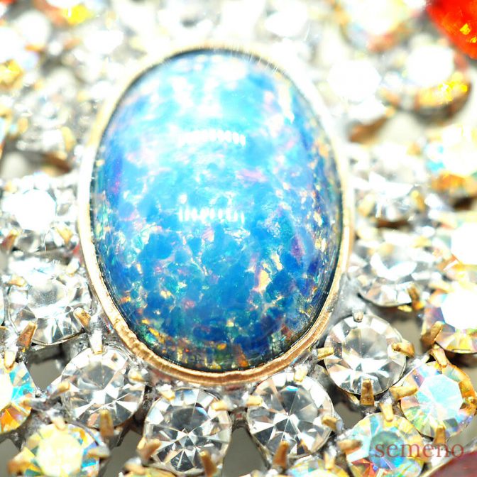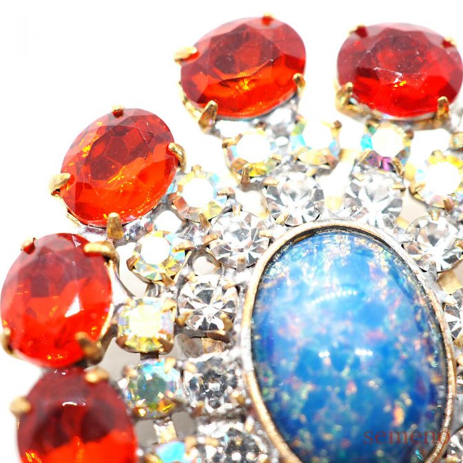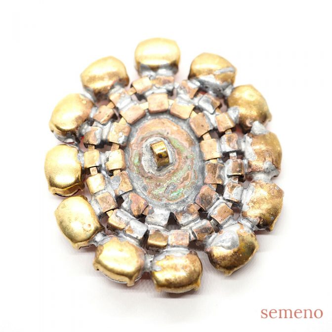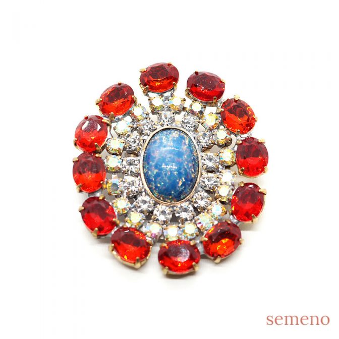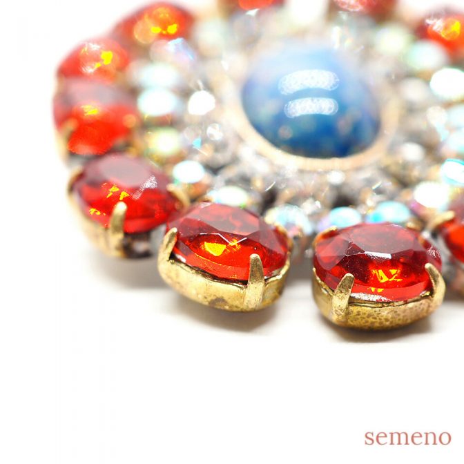 ★オパール風ガラスストーン サークル型 ブローチ風 チェコガラスボタン
