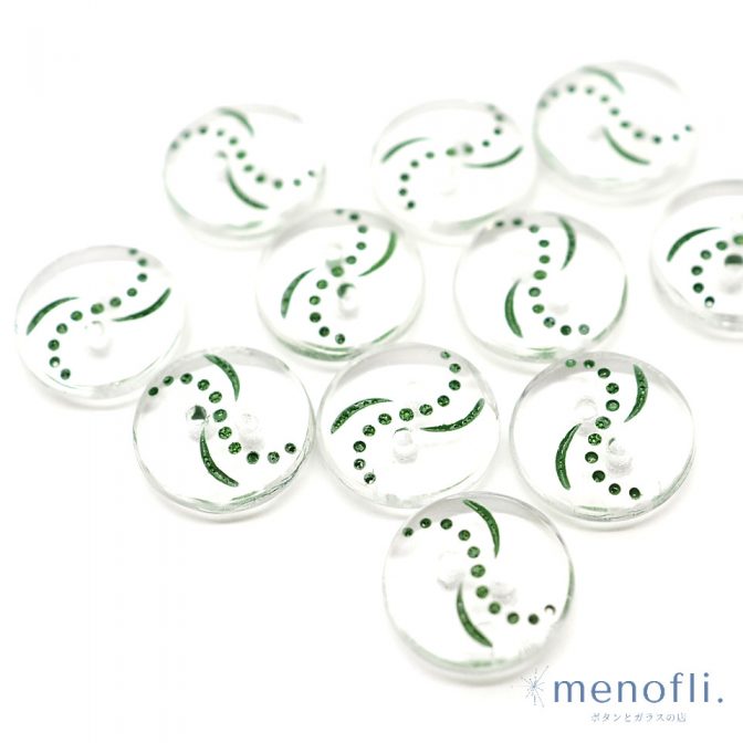 クリア グリーンペイント ヴィンテージボタン チェコガラスボタン RCZB073