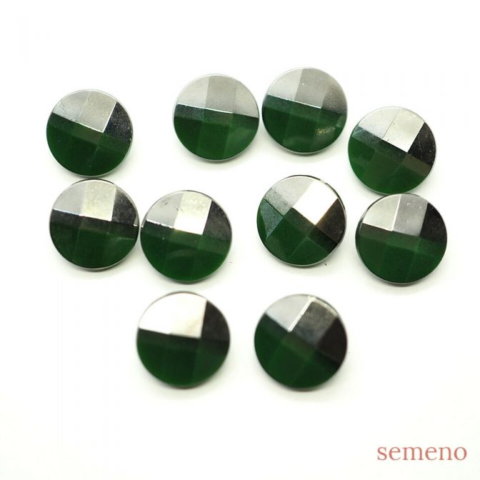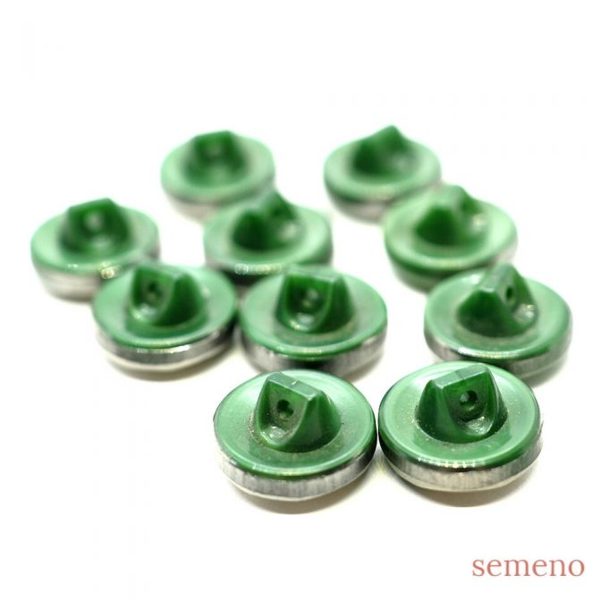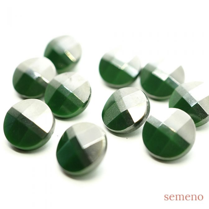グリーン 多面カットデザイン シルバー ミニチェコガラスボタン ヴィンテージボタン