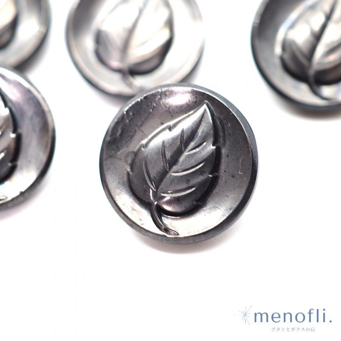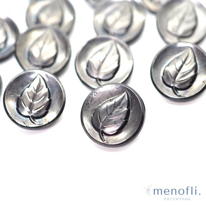 シルバー 葉っぱデザイン ヴィンテージボタン チェコガラスボタン RCZB045