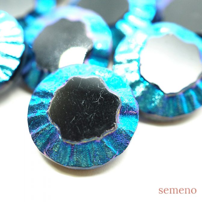 ブルーオーロラ フリル ガラスボタン PCZB054
