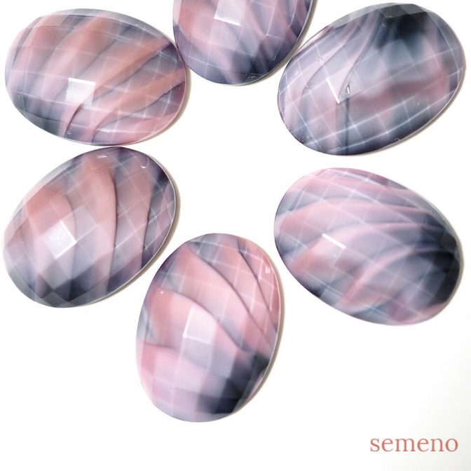 ミラーボールカットのオーバルカボション ヴィンテージ チェコガラス カボション PCZC003
