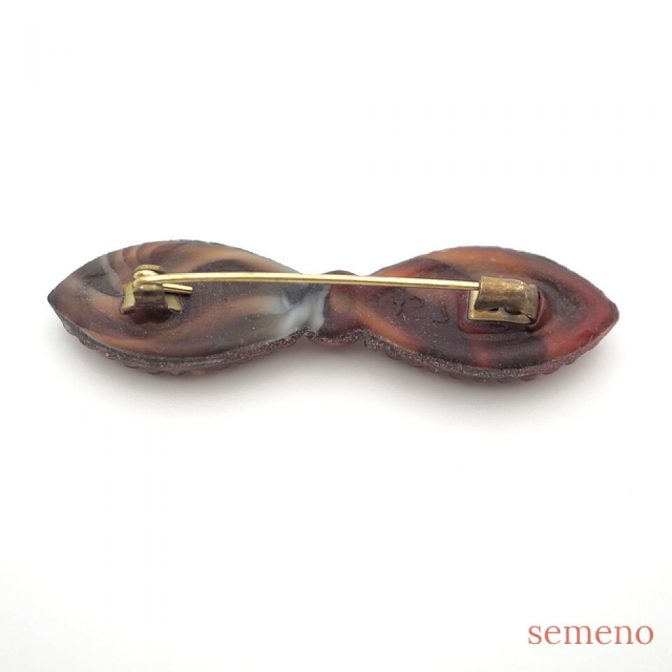 リボン型 マット チェコガラスブローチ GB1203
