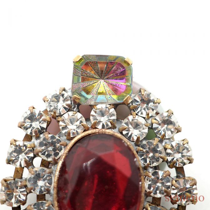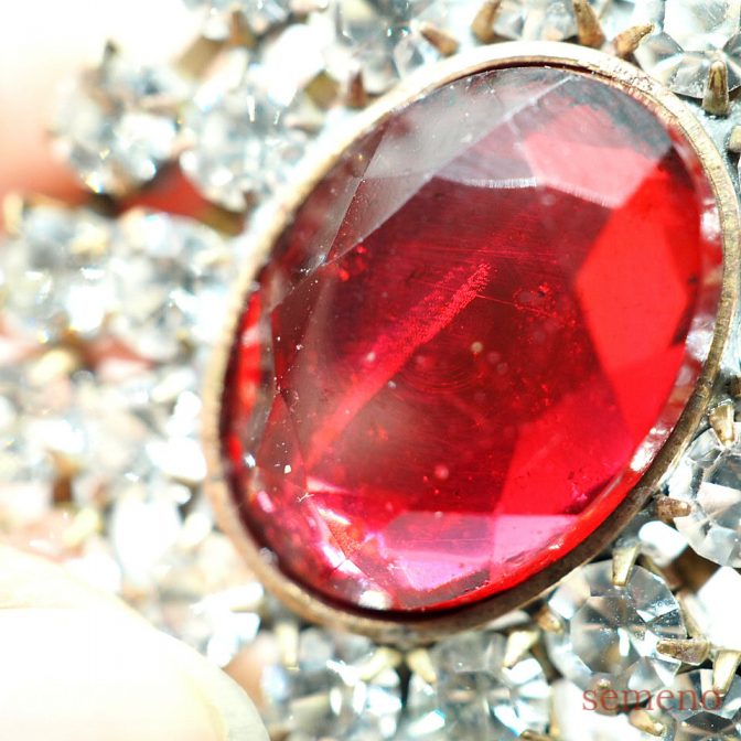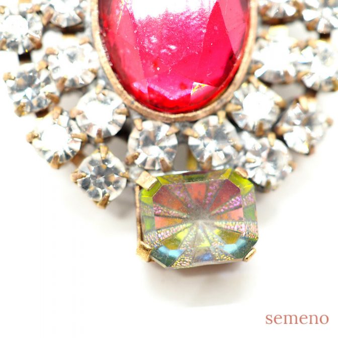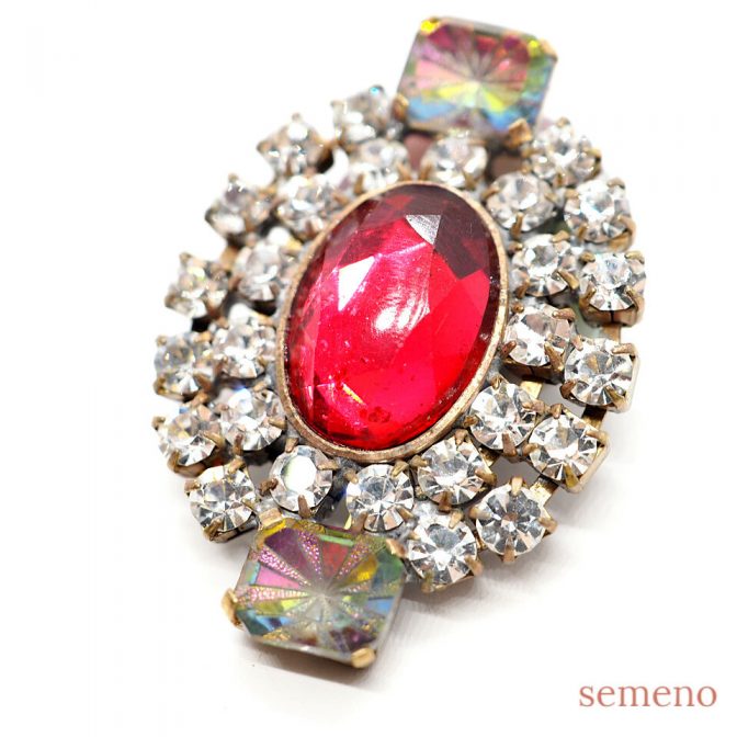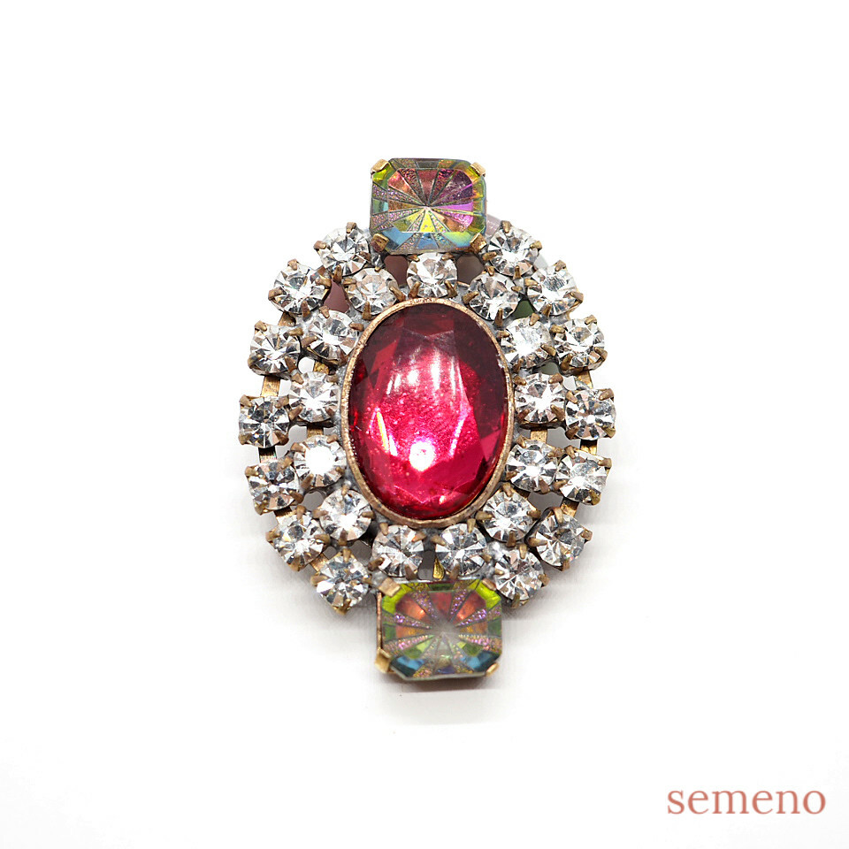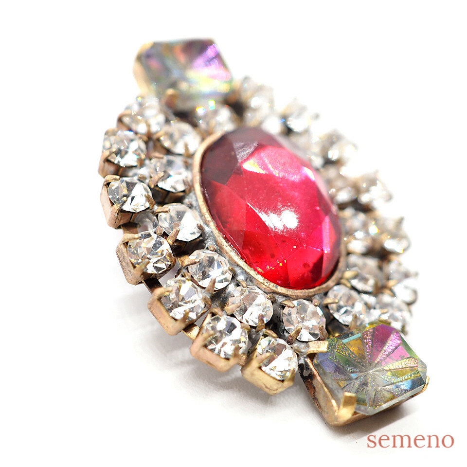 ルビーカラーガラスストーン ブローチ風 チェコガラスボタン