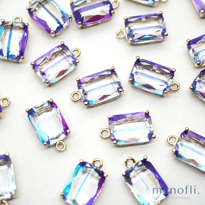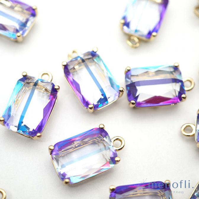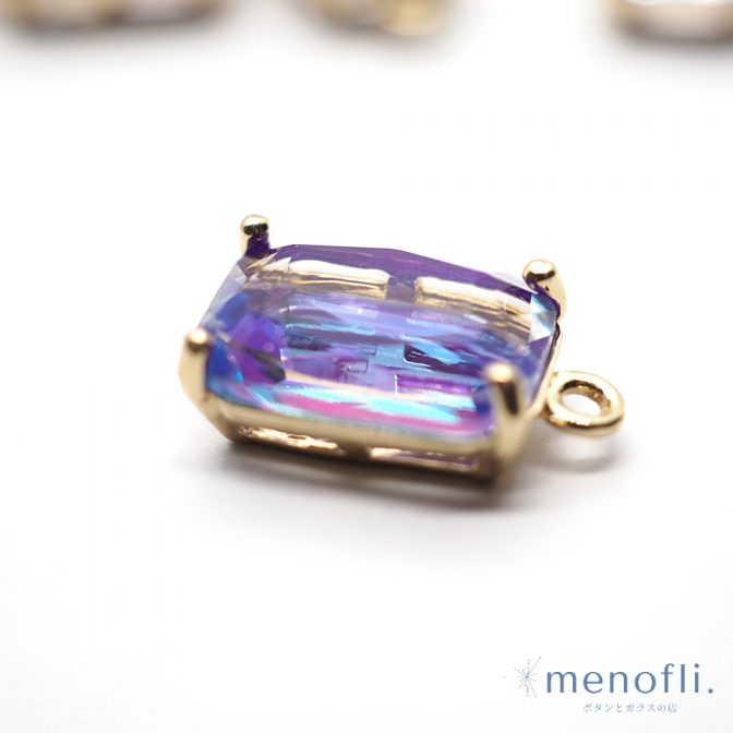 紫 カン付き オクタゴン ゴールド枠 チャーム チャイナガラス ラインストーン グラスストーン
