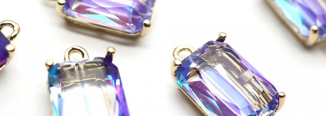 オーロラの輝きが美しいグラスストーンのチャームです。 現行品のグラスストーンです。 カンはクローズドタイプで開閉することは出来ません。 産地:中国 サイズ:17*10mm(カン込) フォイル:無し 備考: 1個のお値段で … 続きを読む 紫 カン付き オクタゴン ゴールド枠 チャーム チャイナガラス ラインストーン グラスストーン