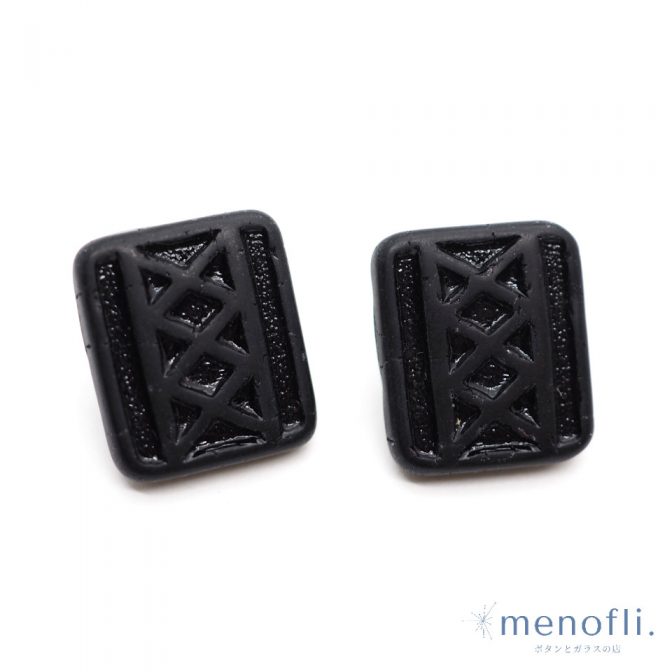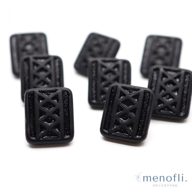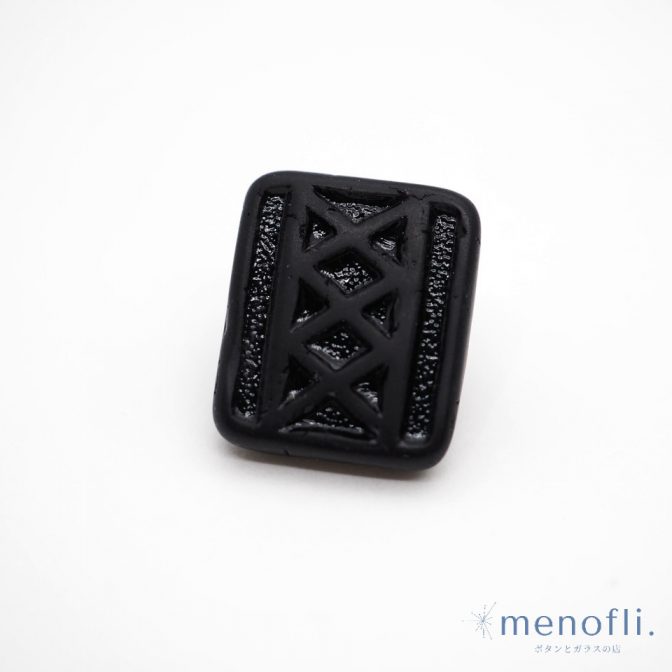 黒 長方形 編み上げデザイン ヴィンテージボタン チェコガラスボタン RCZB089