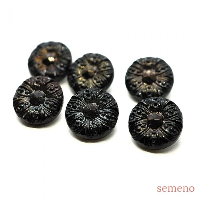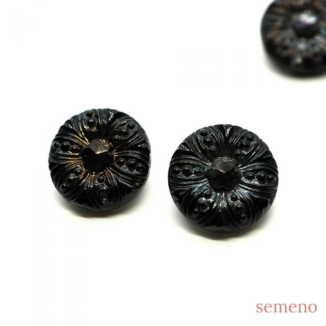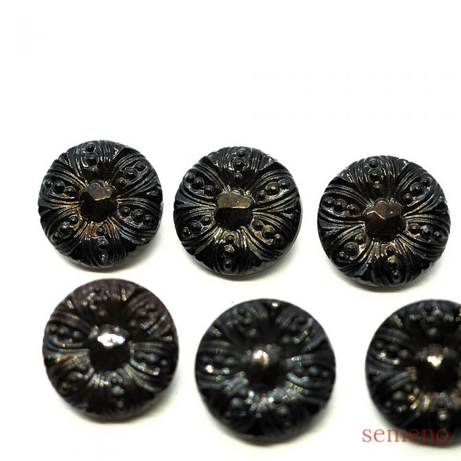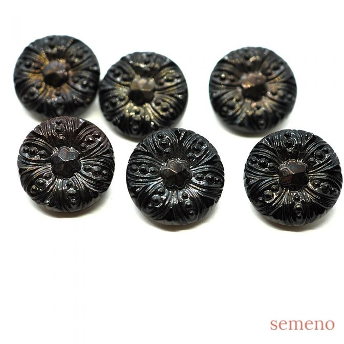 黒 褐色のオーロラ 花デザイン チェコガラスボタン ヴィンテージボタン