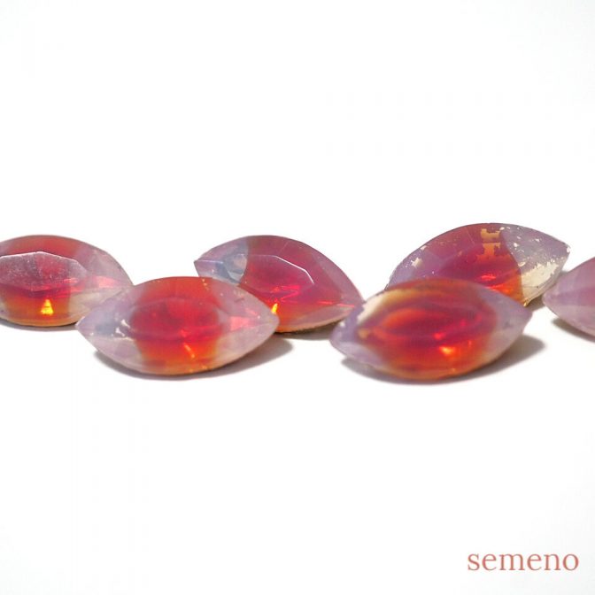 ★2pc レッド オパール ナベット 15*7 ヴィンテージガラス ラインストーン グラスストーン A35B